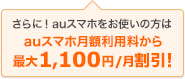 特にauスマートフォンユーザーはプロバイダによっては、auスマートバリューmineを申し込みできます。プランによって金額は異なりますが、auスマートフォンの月額利用料金が値引きされ、さらにお得になります。